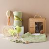 Introducing the Newborn Baby Bath Toy Set, a delightful collection of baby essentials designed to make bath time fun and cozy for your little one. This set includes a soft cotton towel, an adorable crochet dinosaur, a wooden rattle bracelet, and more. Each item is carefully crafted to provide comfort, entertainment, and developmental benefits for your baby.