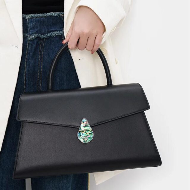 The surface of the lock is made from natural bulb fritillary, meticulously polished by hand to retain its unique traces. Each lock is carefully hand-spliced into shape, ensuring it stands out without bursts or scratches. This handbag is not just a fashion statement; it’s a testament to exquisite craftsmanship and attention to detail.
