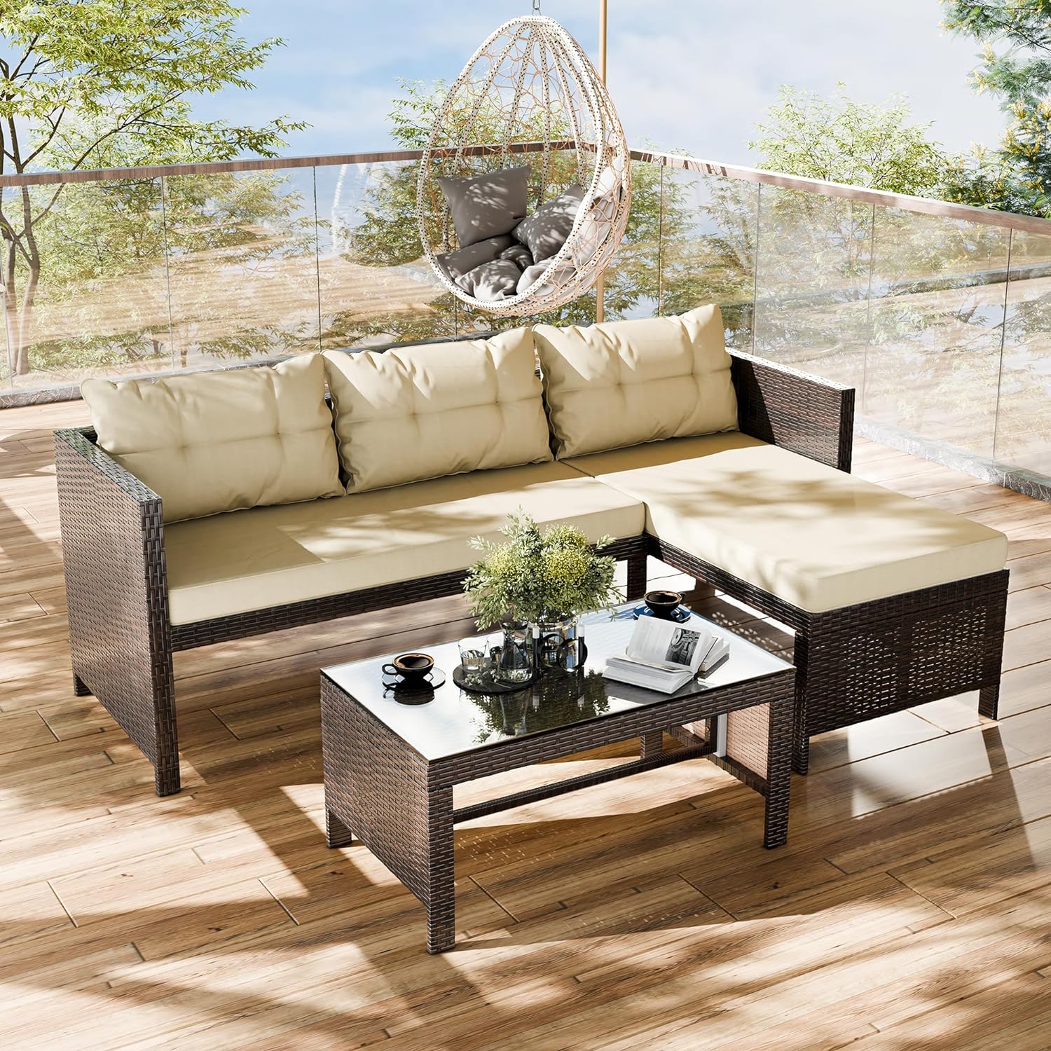 Sink into the 2.4-inch high resilience foam cushions that offer exceptional comfort and support. The plush seating and back cushions create a luxurious lounging experience, allowing you to unwind and enjoy the serenity of your outdoor space. The sectional design of this set means you can arrange it to fit any outdoor area, whether it’s a small balcony or a spacious garden. The detachable cushions and versatile ottoman add to the flexibility, allowing for various configurations to suit your needs.
