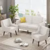 Elevate the ambiance of your living room with our Modern 3-Piece Living Room Set, featuring a beautifully upholstered loveseat and two matching accent chairs. This set is designed for those who value both aesthetics and comfort, making it the perfect addition to any modern home. The button-tufted upholstery adds a touch of elegance, while the sturdy wood frame ensures long-lasting durability. Whether you’re entertaining guests or enjoying a quiet evening with family, this living room set is crafted to provide both style and comfort.