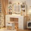 - 47″ Wide Vanity Desk with Adjustable LED Mirror: Choose from warm, natural, or cool light settings to match any occasion or task.