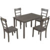 Transform your dining area with this stylish and functional 5-Piece Wood Dining Table and Chair Set in a rich Espresso/Gray finish. Designed to bring a touch of elegance and practicality to your home, this set includes one sturdy table and four comfortable chairs, making it perfect for family meals and gatherings.