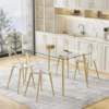 Elevate your dining space with our stunning 51-Inch Modern Glass Dining Table Set for 4. This exquisite set is designed to blend elegance and functionality, making it the perfect addition to any kitchen or dining room. With its sleek tempered glass tabletop and luxurious gold plating legs, this dining set offers a touch of modern sophistication that will impress your guests and enhance your meals.