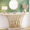 Elevate the elegance of your home with this stunning 59-inch modern gold console table. Designed to impress, this console table features a sleek, faux marble finished veneer that effortlessly blends with the luxurious gold grid-shaped metal base. Whether placed in your entryway, hallway, or living room, this piece is sure to catch the eye of anyone who enters your home. Its minimalist yet striking design adds a sophisticated touch, making it the perfect accent piece for modern and contemporary interiors.