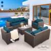 Crafted with delicate composite weaving and 3-stand all-weather HDPE wicker material, this patio furniture set is handwoven over fully-welded, powder-coated steel framing, ensuring exceptional durability and sturdiness. The breathable 250G polyester fabric is anti-UV and water-repellent, offering long-lasting comfort, color retention, and easy maintenance. With waterproof covers included, your furniture is protected from dust, rain, and sun, making it a reliable choice for all seasons.