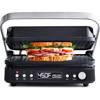 - 6-in-1 functionality: contact grill, contact griddle, panini press, mixed grill/griddle, open grill, and open griddle