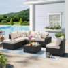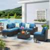 What sets our 7-Piece All-Weather Patio Set apart is its combination of durability, versatility, and comfort. The high-quality materials ensure it can endure various weather conditions, making it a reliable choice for any season. The modular design allows for endless configuration options, providing a customized fit for any outdoor space. Plus, the plush cushions and wide armrests enhance your lounging experience, making every moment outdoors more enjoyable.