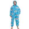 - Design: One-piece hooded jumpsuit with either a zipper or button closure. A convenient zipper at the back makes bathroom breaks easy.