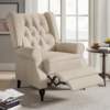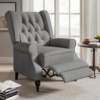 Featuring a striking wingback design, this recliner chair adds a touch of mid-century modern charm to any room. The button-tufted diamond stitching on the backrest, coupled with its tall, elegant gourd-shaped legs, make it a standout piece that complements any décor. Crafted with care, the chair is wrapped in soft, stain-resistant linen fabric that not only feels luxurious but also adds durability.