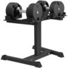 - Adjustable Dumbbell Rack: Tailored to fit different brands and shapes of quick-adjust dumbbells, thanks to the adjustable size knobs at the base of the tray.