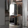 Introducing the Elegant Arched Full Length Mirror, a stunning addition to any home that combines modern aesthetics with practical functionality. Measuring 64 inches by 21 inches, this floor-standing mirror is designed to enhance any room, from bedrooms to living rooms, and even bathrooms. Its gold metal frame adds a touch of sophistication, making it a perfect centerpiece for your decor.
