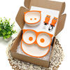 Our Baby Feeding Set includes a bowl, plate, spoon, and fork, all featuring a playful owl design. The silicone material is soft yet sturdy, providing a comfortable and secure grip for your baby. Each piece is designed to be safe and practical, with a sucker base to prevent spills and messes. The set is certified by CE/EU, guaranteeing it meets the highest safety standards.