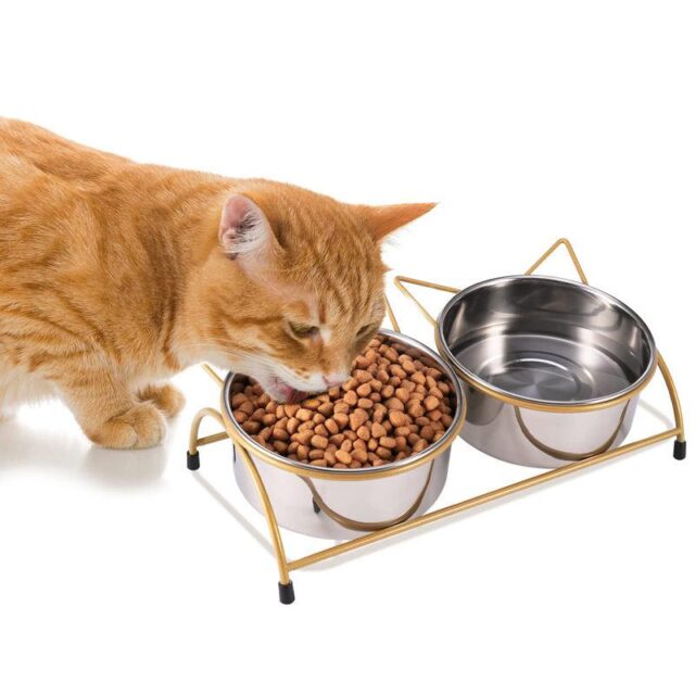 Perfectly suited for both dogs and cats, this double bowl set is designed with your pet’s comfort and your home’s cleanliness in mind. It’s especially great for pets that eat and drink quickly or tend to make a mess. The non-slip silicone mat keeps the bowls steady, preventing spills or food from being scattered all over the floor. Plus, the high-quality stainless steel bowls are resistant to rust, corrosion, and wear, ensuring longevity and ease of use.