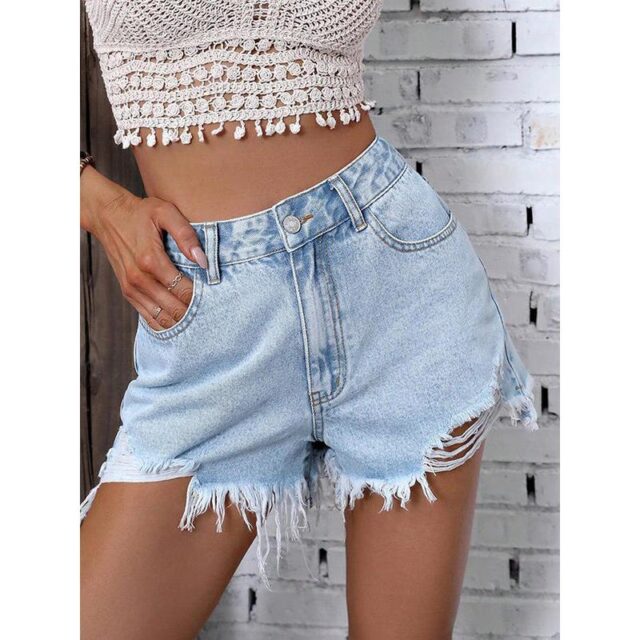 Crafted from high-quality denim, these shorts feature a loose fit and frayed hem, giving them a trendy, streetwear-inspired look. The high waist design accentuates your waistline while offering comfort and ease of movement. The ripped detailing adds a touch of edginess, making these shorts a must-have for fashion-forward women.