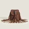 The Bohemian Skull Rivet Chain Fringe Tassel Shoulder Bag is more than just an accessory; it’s a statement piece that reflects your unique personality. Don’t miss out on the chance to own this one-of-a-kind bag that blends punk and bohemian styles effortlessly.