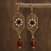 Make a statement with these stunning Boho Ethnic Geometric Waterdrop Earrings, designed to add a touch of elegance and artistry to any outfit. Whether you’re going for a casual, laid-back vibe or dressing up for a special occasion, these handmade earrings will be the perfect accessory to complement your style. Featuring bold geometric shapes and an alluring mix of red, blue, and white stones paired with delicate pearls, these earrings are a true reflection of bohemian charm. Lightweight and comfortable, they’re suitable for everyday wear or as a standout piece for evening attire.