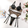Embrace your seductive side with our Sexy Leopard Print Transparent Lingerie Set. This stunning set includes a bra, panties, and garter belt, all designed to highlight your curves and make you feel irresistible. The ultrathin, transparent fabric is both daring and comfortable, ensuring you look and feel your best.