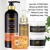 What sets our Brightening Body Lotion apart is its unique combination of natural ingredients that provide a multi-faceted approach to skincare. The inclusion of papaya and vitamin C soap in the set offers gentle cleansing and brightening, while the collagen whitening serum and dark spots corrector cream target specific skin concerns such as blemishes and age spots. This comprehensive skincare kit ensures that you achieve the best possible results with consistent use.
