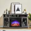 Transform your living room into a cozy haven with our Curved Fireplace TV Stand featuring a 26” electric fireplace. This media entertainment center combines modern functionality with a charming farmhouse aesthetic, creating a centerpiece that is both beautiful and practical. Its unique curved design and elegant glass door storage cabinets make it a perfect fit for any home decor, adding a touch of sophistication to your space.