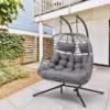 The Double Egg Chair is built with a sturdy steel frame hand-wrapped in gray PE wicker rattan, ensuring long-lasting use and a chic appearance. The stand, made of powder-coated and electrophoretic painted steel, is designed to resist rust and withstand the elements, making it perfect for both indoor and outdoor use. The luxurious thick cushion, made from outdoor fabric and filled with soft sponge, provides exceptional comfort and is resistant to fading, ensuring your chair looks and feels great for years to come.