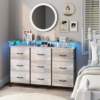 This dresser stands out for its combination of style, functionality, and convenience. It’s perfect for anyone looking to enhance their living space with a modern, space-saving storage solution. The built-in power strip and LED lights add a unique touch, making it not just a piece of furniture but a smart addition to your home.
