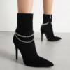 The combination of elegant suede, a trendy metal chain accent, and a striking high heel make these boots stand out from the crowd. Designed to offer both style and comfort, these boots feature a soft cushioned insole, ensuring that you look great and feel comfortable with every step. The pointed toe and high heel elongate your legs, creating a flattering silhouette that’s perfect for any occasion. The durable rubber sole provides excellent traction, ensuring you can walk confidently wherever you go.