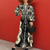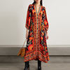 Elegant Women Long Sleeve Waisted A-line Dress Fashion V-Neck Button Up Bohemian Dress Autumn Retro Floral Print Long Dress