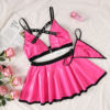 What sets this outfit apart is its unique blend of punk style and feminine details. The pleated mini skirt and criss-cross decorations add a playful yet edgy vibe, making you the center of attention wherever you go. The high-quality broadcloth fabric and meticulous craftsmanship ensure a comfortable fit and lasting wear. Plus, the super-short length and bold design are perfect for showing off your personality and fashion-forward sense.