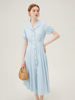 The unique polo neckline and short sleeves add a touch of classic charm, making this dress a versatile addition to your wardrobe. Made from a high-quality cotton blend, it feels soft against the skin and keeps you cool during those warm summer days. The single-breasted closure and A-line silhouette enhance its timeless appeal, ensuring you look chic and refined.