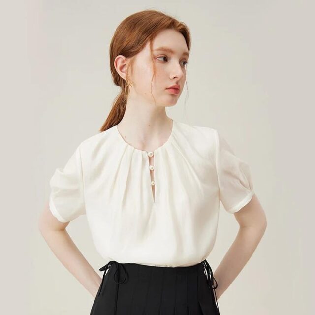 This elegant top is versatile enough to be worn on various occasions, from casual outings to more formal events. Pair it with your favorite jeans for a relaxed yet stylish look, or dress it up with a skirt or tailored pants for a more sophisticated ensemble. The mint green color adds a refreshing touch to your wardrobe, making it an excellent choice for spring and summer.