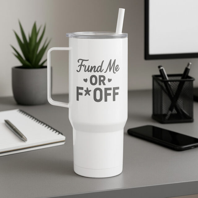 The Fund Me or F Off Tumbler is more than just drinkware—it’s a fearless statement. Designed for founders, dreamers, and go-getters who won’t settle for less, this tumbler is the perfect blend of attitude and utility. Whether you’re pushing through late-night work sessions, pitching your vision to investors, or simply owning your morning routine, this cup keeps your energy strong and your style even stronger.