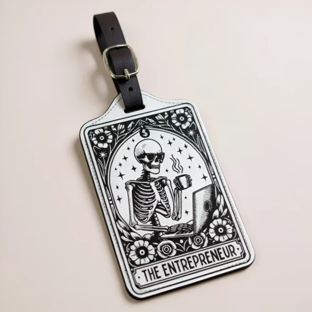 Why settle for ordinary when you can travel with extraordinary flair? The Goth Tarot Entrepreneur Skeleton Luggage Tag is not only practical but also unforgettable. Add it to your luggage today and make sure your bags—and your style—are never overlooked.