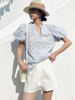 Step into summer with the Elegant Sheer Summer Blouse, a stunning piece that effortlessly combines elegance and comfort. This white and blue blouse is designed to make you feel chic and stylish, whether you’re out for a casual day or dressing up for a special occasion. Crafted from high-quality cotton, this blouse ensures breathability and comfort throughout the warm summer days.