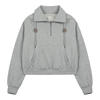 This hoodie is made from a soft cotton blend that feels great against your skin, offering a relaxed fit that drapes beautifully on all body types. The loose silhouette provides freedom of movement, while the full-length sleeves and turn-down turtleneck collar add a touch of sophistication. The zipper closure allows you to adjust the neckline to your liking, whether you prefer a snug fit to keep out the chill or a more open, laid-back look. Available in versatile gray and navy blue, it pairs effortlessly with your favorite jeans, leggings, or joggers.