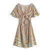 Elevate your summer wardrobe with this eye-catching Floral Print Bohemian Mini Dress. Crafted from a lightweight blend of rayon and cotton, this dress features a deep V-neckline and delicate hollow-out detailing for a truly boho-chic look. The floral print adds a fresh and feminine touch, while the short sleeves keep you cool and comfortable on warm days. Perfect for outdoor festivals, beach vacations, or casual weekend outings, this dress is designed to make you feel effortlessly stylish and free-spirited.