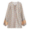 The loose fit and flowy silhouette of this blouse make it a flattering choice for women of all shapes and sizes. The V-neck design elongates the neckline, adding a subtle touch of allure, while the long sleeves provide extra coverage without compromising on style. With its easy-to-wear design, you can pair it with your favorite jeans, shorts, or skirts for a complete bohemian-inspired look.