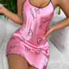 Drift into a world of comfort and elegance with the Heart Print Criss Cross Back Nightdress. Perfectly blending style and relaxation, this mini sleep dress is designed for the modern woman who values both fashion and comfort in her nightwear. The soft polyester material ensures a smooth, luxurious feel against your skin, while the playful heart print adds a touch of charm to your nighttime look. The criss-cross back detail adds a unique flair, making this sleepwear not only functional but stylish.