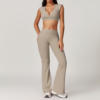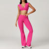 This versatile yoga and workout set is ideal for a variety of activities. Wear it to your yoga class, during your intense gym sessions, or for a refreshing outdoor run. The high-waist leggings provide excellent support and compression, enhancing your performance and helping you stay focused. The breathable material ensures you stay cool and dry, no matter how intense your workout gets.