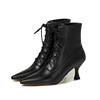 Handmade with the highest attention to detail, these boots stand out for their premium materials and expert craftsmanship. The genuine cowhide leather upper, combined with a soft sheepskin insole, ensures maximum comfort and long-lasting wear. The modern cross-tied lace-up design gives these boots a unique, fashion-forward appeal while the pointed toe and thin heels create a sleek and timeless silhouette. Whether you’re dressing up for a night out or adding sophistication to your daily wear, these boots are designed to impress.