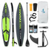 Crafted from high-quality PVC material, this paddle board can withstand up to 309 lbs, ensuring durability for any water conditions, whether you’re on a calm lake or navigating ocean waves. The anti-slip soft EVA top deck cushions your stance and reduces accidents if you slip, making it ideal for both youth and adults. Plus, it quickly inflates and deflates, making transportation and storage a breeze.