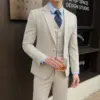 Step into any event with confidence and style with the Men’s 3-Piece Elegant Slim Fit Suit. This sophisticated set includes a jacket, vest, and pants, all designed with meticulous attention to detail. Crafted from a luxurious blend of LYCRA, polyester, viscose, and wool, this suit offers a perfect balance of comfort and durability, ensuring you look your best throughout the seasons.