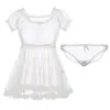 This strapless babydoll nightdress is designed with the modern woman in mind. The one-word collar and short sleeves create a flattering silhouette that highlights your natural beauty, while the lace details add a touch of elegance and femininity. The solid pattern and pure design make it a versatile addition to your sleepwear collection, perfect for any occasion from a quiet night in to a romantic evening.