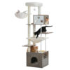 Transform your home into a feline paradise with this 75-inch multi-level cat tree. Designed for households with multiple cats, this wooden tower combines functionality and modern style to provide the perfect retreat for your furry friends. Whether your cat loves climbing, lounging, scratching, or simply watching the world go by, this cat tree caters to every need.