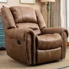 The Classic Leather Recliner Chair stands out with its combination of style, comfort, and functionality. The high-quality faux leather upholstery ensures easy maintenance, while the high-density foam and LVL system provide superior comfort and stability. The thoughtful design, including overstuffed pillows and a smoothly reclining mechanism, ensures a relaxing experience every time. Plus, the classic brass nail accents add a luxurious touch that elevates the overall aesthetic of your home.