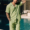 Step into summer with effortless style and comfort with our Men’s Summer Two-Piece Set. Perfect for beach outings, casual gatherings, or just a relaxed day out, this set combines a short sleeve lapel button shirt and matching shorts for a coordinated, stylish look. Designed with the modern man in mind, this ensemble is the epitome of summer fashion and streetwear.