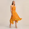 Step into the season with unmatched grace in our Silk Halter Maxi Dress. Designed for women who love to embrace timeless style, this dress is crafted from luxurious 19 Momme printed charmeuse silk, making it soft, smooth, and incredibly lightweight. With its handkerchief hem that floats effortlessly in the breeze and an adjustable halter-neck design, this dress is a dream for those who want comfort and beauty in one package. The sunny orange backdrop with paisley floral prints adds a vibrant touch that’s perfect for spring and summer gatherings.