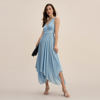 This ankle-length dress combines modern design elements with a classic silhouette, offering a balance of style and comfort. Its V-neckline and sleeveless design create a flattering, airy look, perfect for showcasing your natural beauty.