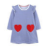 Make this season memorable for your little girl with this delightful cotton long sleeve dress featuring a charming heart pocket design. Perfectly blending style and comfort, this striped dress is ideal for the cooler fall days. The dress’s knee-length A-line silhouette offers a casual yet chic look that your child will love to wear.