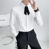 This shirt is made from high-quality cotton, offering comfort and durability. It features a turn-down collar and single-breasted closure, providing a classic yet contemporary look. The broadcloth fabric and solid color pattern make it versatile for both business casual and more formal settings.