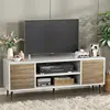 Whether you’re setting up in your living room, bedroom, or office, this TV stand is a versatile piece that fits perfectly in any space. Its modern style with a retro twist makes it suitable for most interior designs, and the neutral colors ensure it blends well with existing furniture. The generous storage space provided by the two cabinets allows you to keep your media equipment, games, and accessories neatly organized and out of sight.